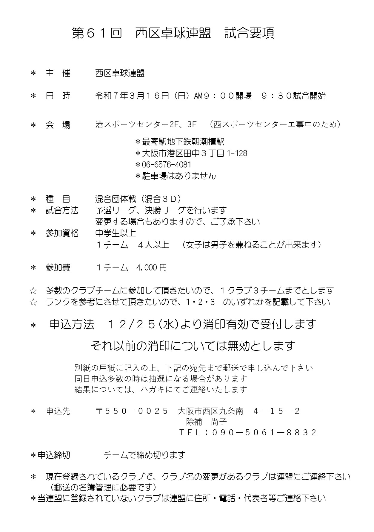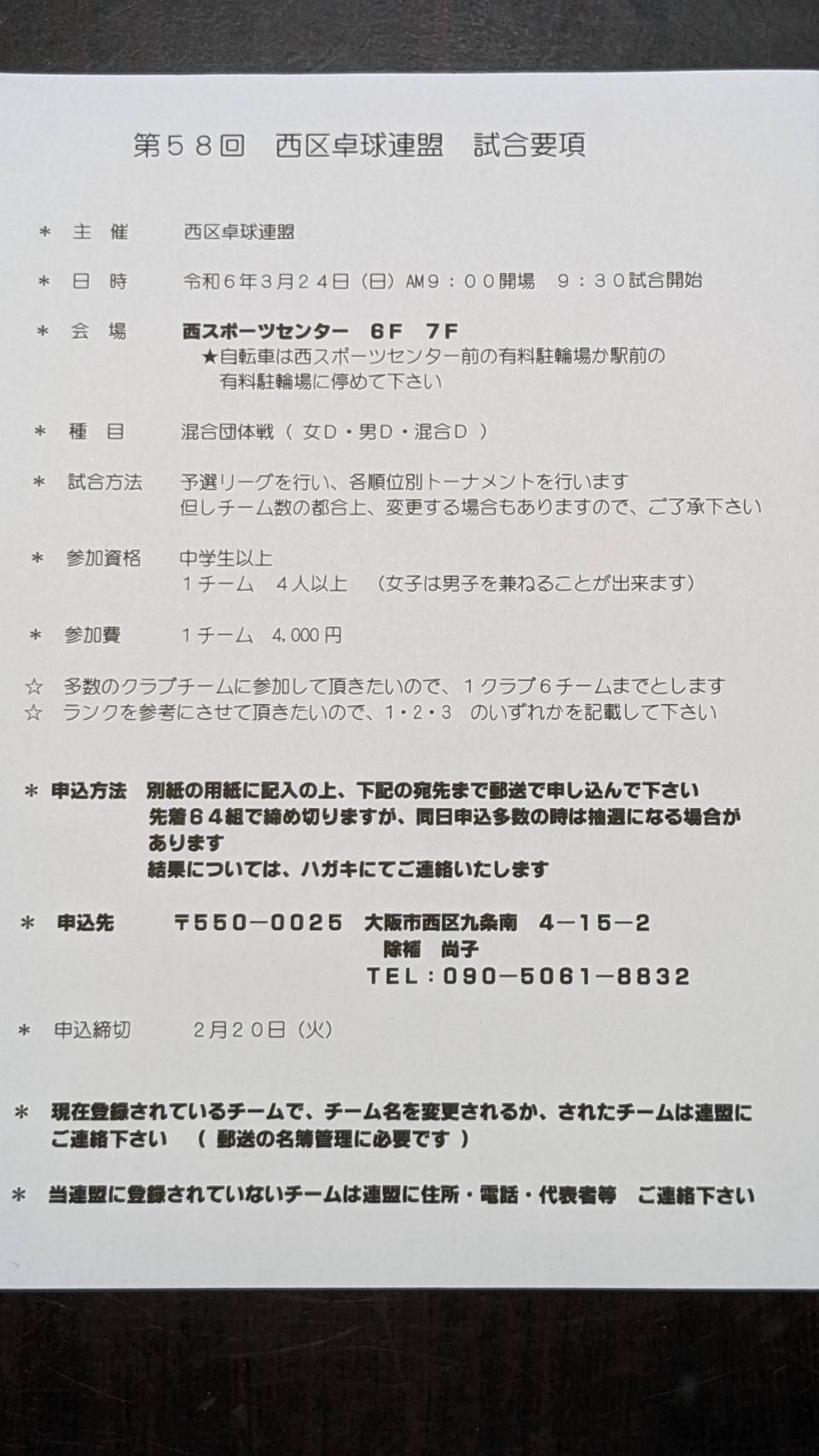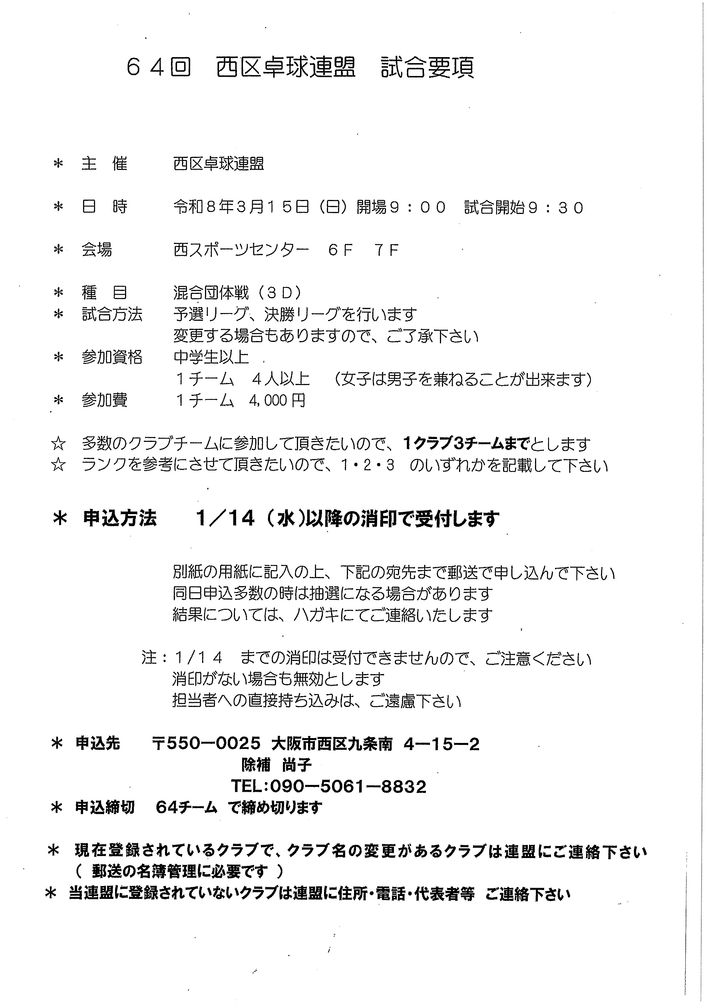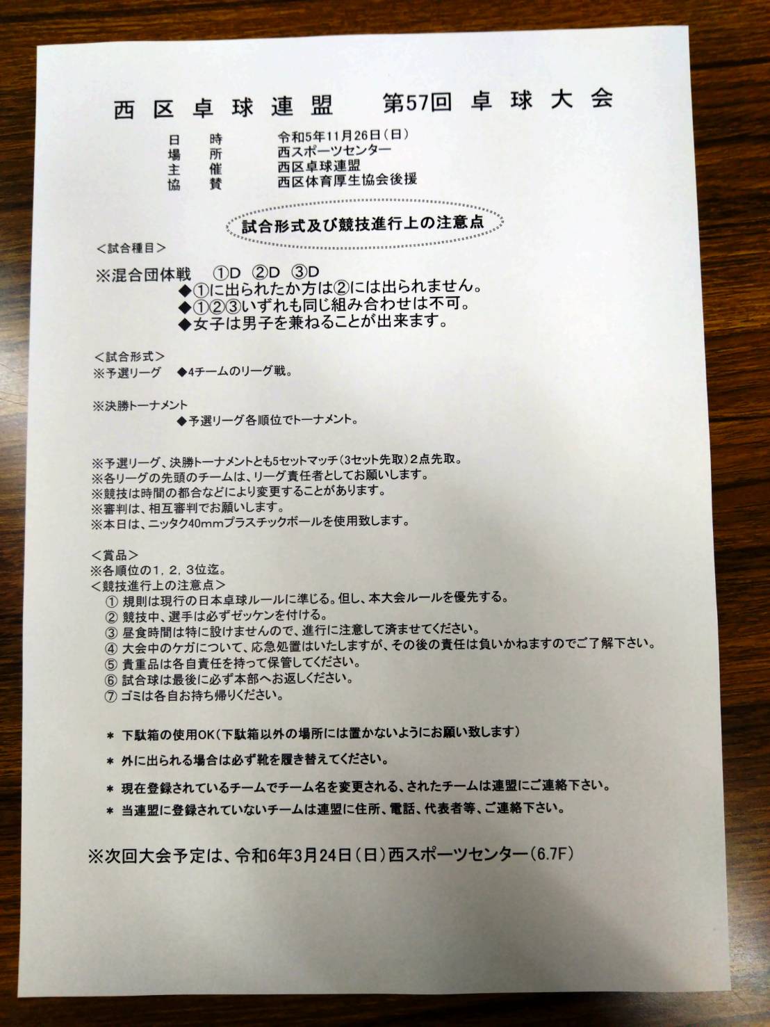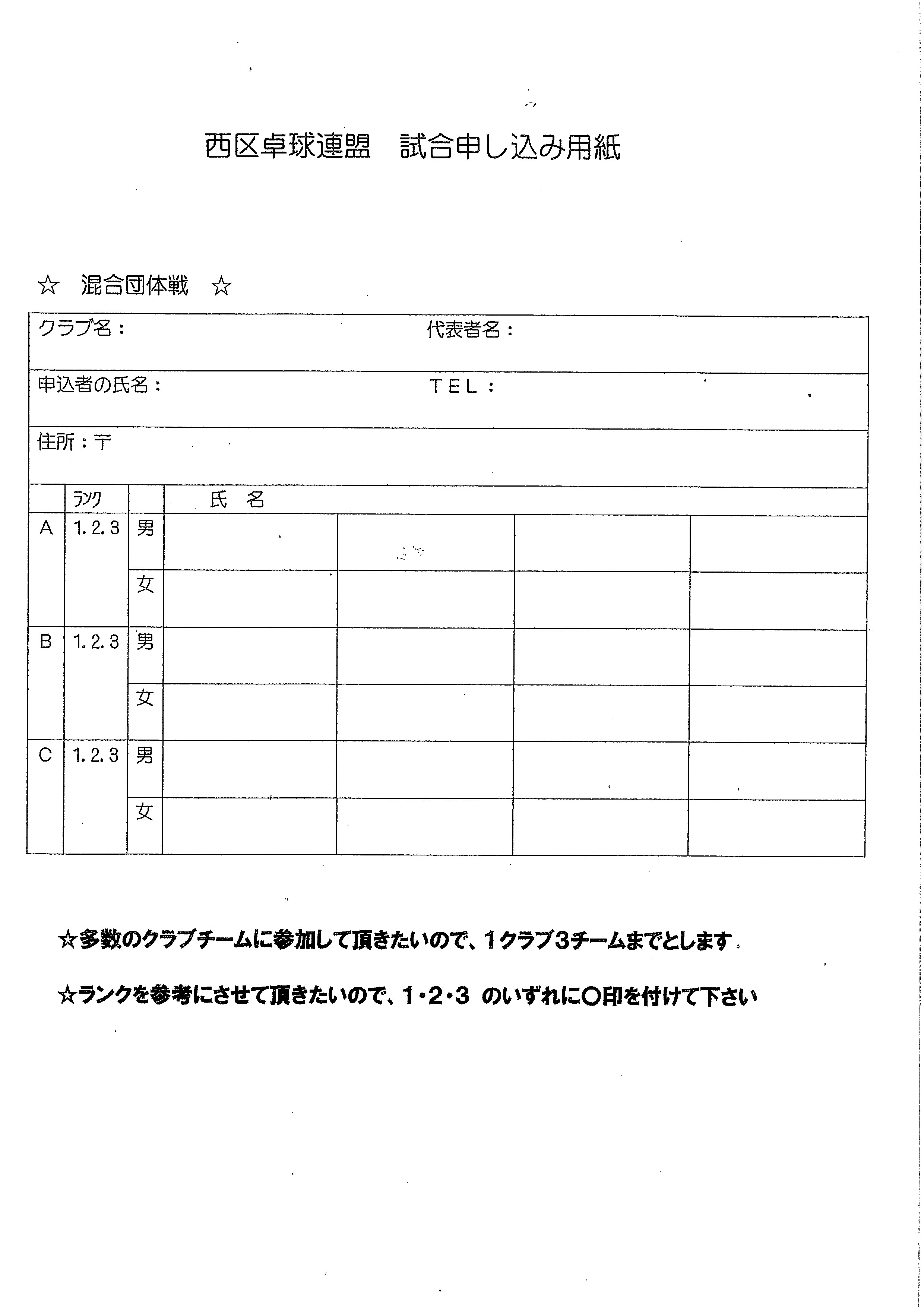 混合ダブルス団体戦<西スポーツセンター第1・2>予定 |