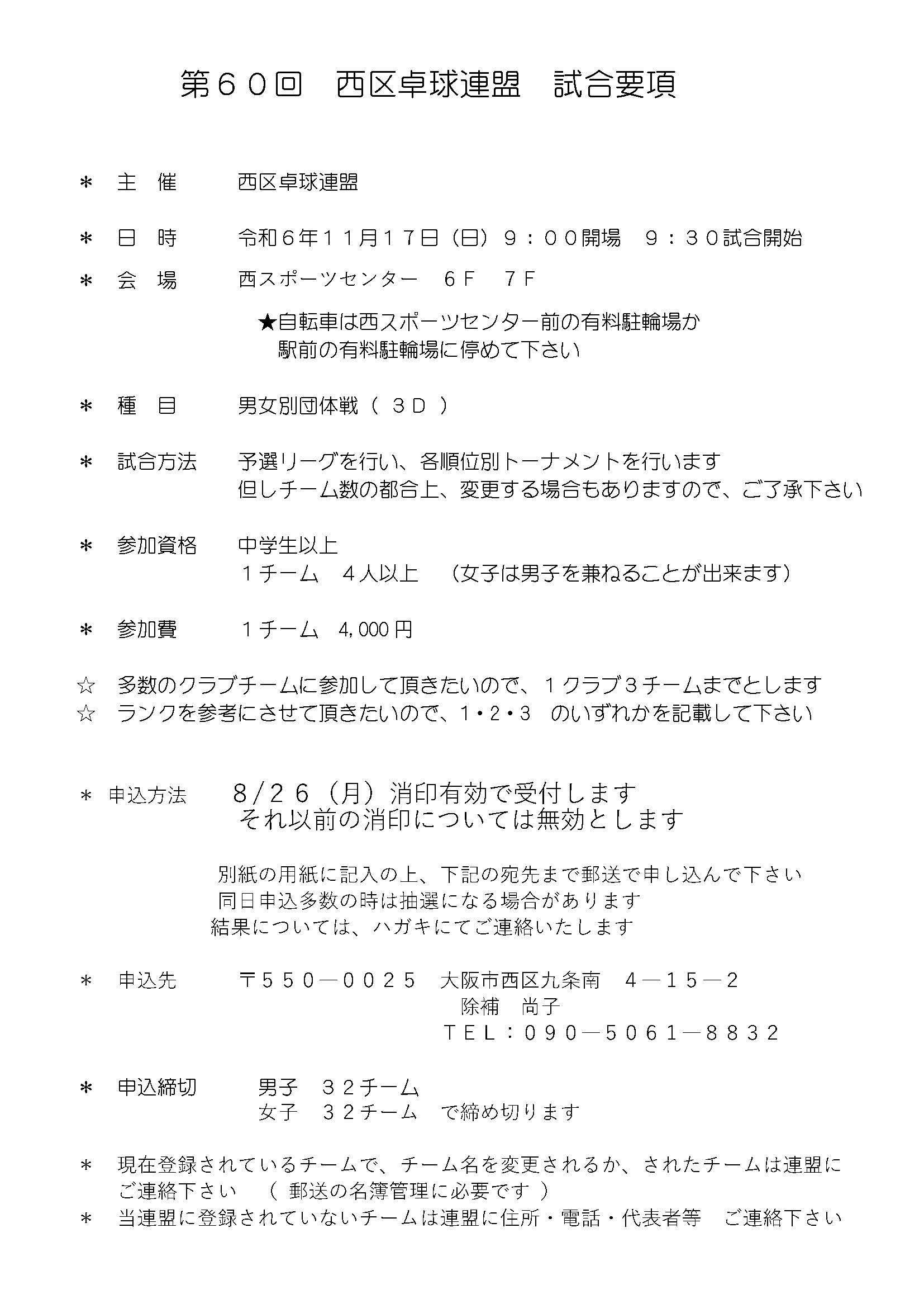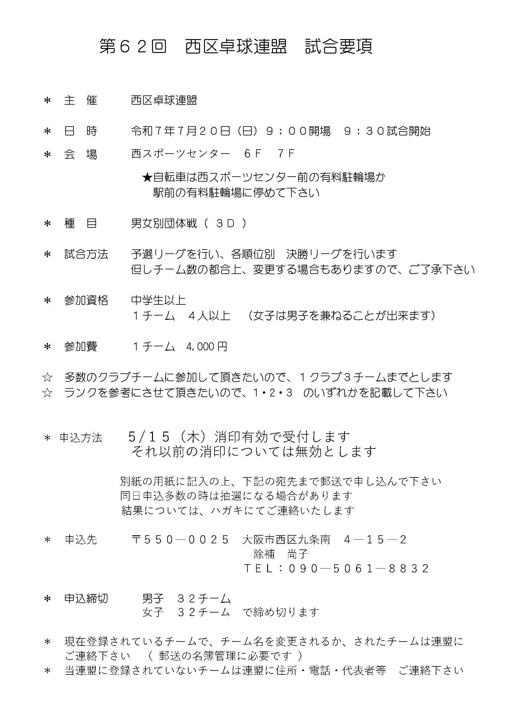 男女別団体戦<西スポーツセンター第1・2>予定 |